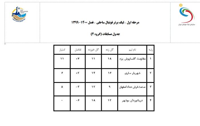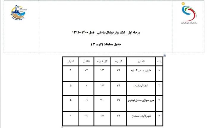 جدول مسابقات سه گروه را نیز می توانید مشاهده کنید.